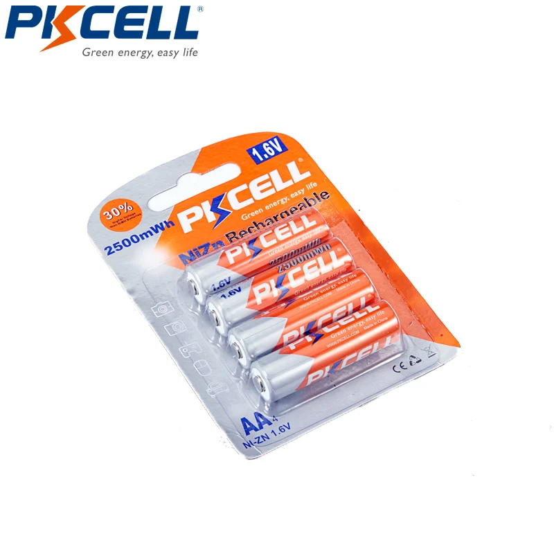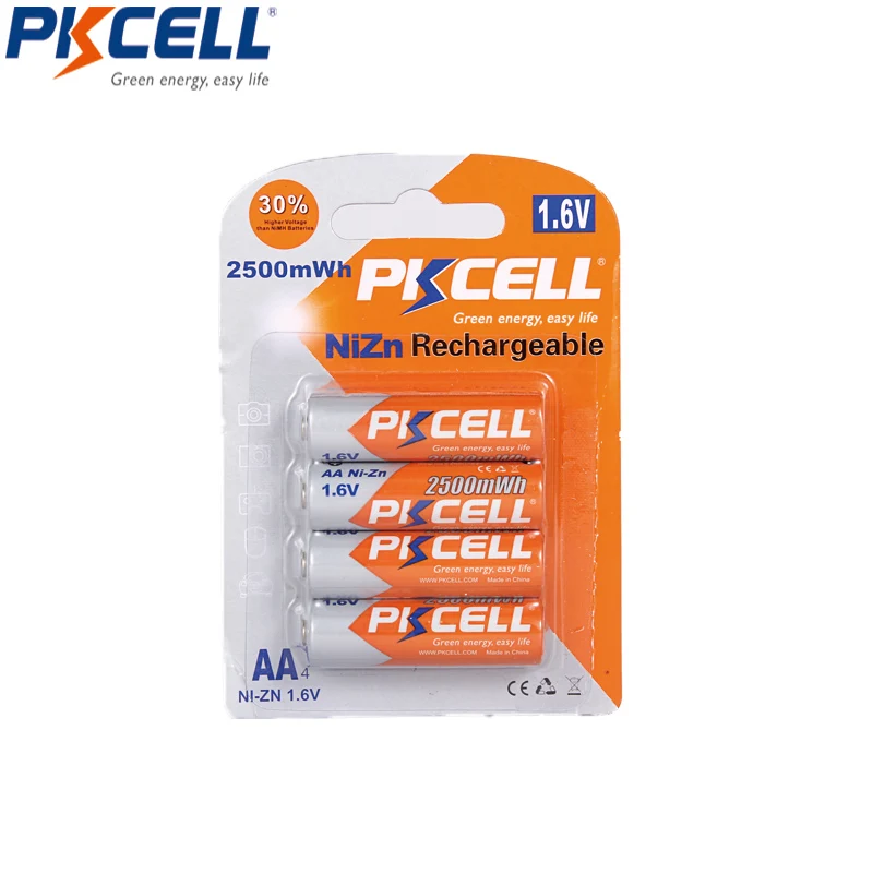 Big Promo 4Pcs PKCELL 1.6V AA 2250mWhrs to 2500mWh Batteries NIZN aa Rechargeable Battery packed with Ni-Zn B