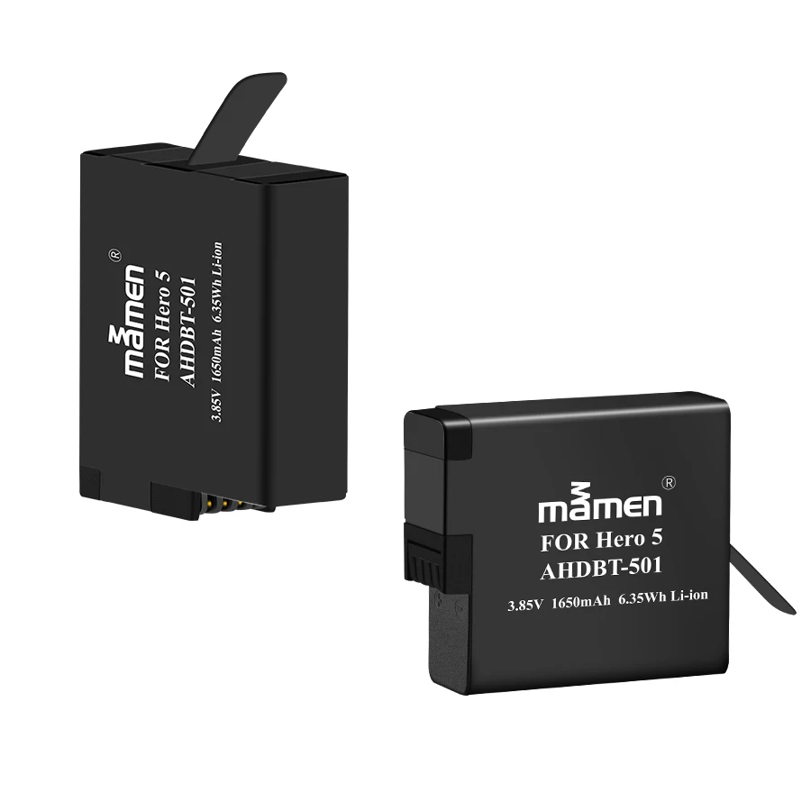 Mamen 2pcs Gopro 501 AHDBT-501 Digital Camera Battery + USB Dual Charger 2 port for Gopro Hero 5 6 7 Sport Action Camera Battery