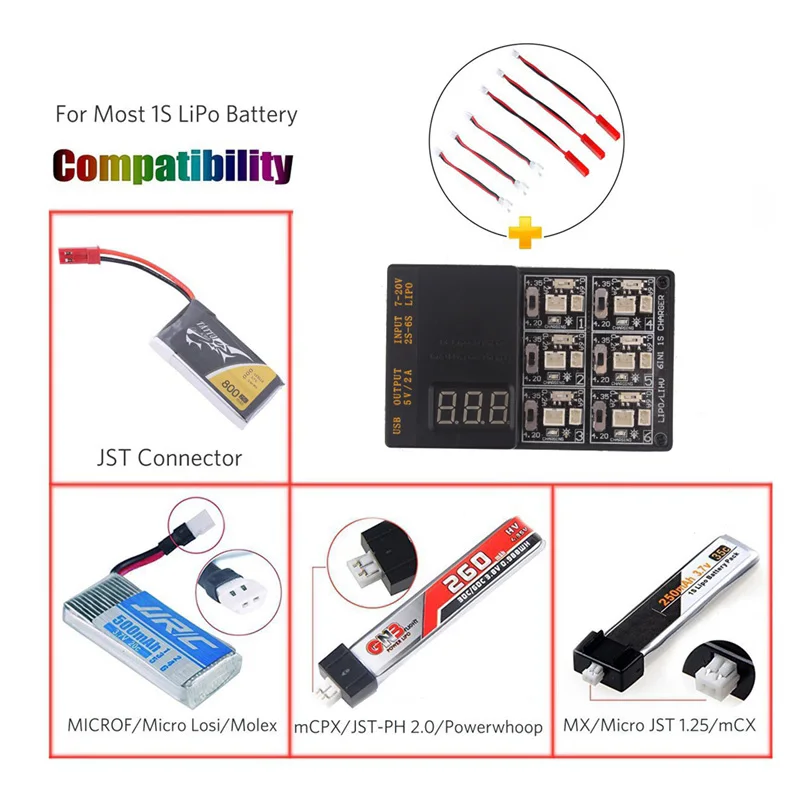 Best Deal 6 in 1 3.7V 3.8V 1S Lipo LiHv Battery Charger Board for Tiny 6 7 QX65 Mobula7 Mini RC Quadcopter FP