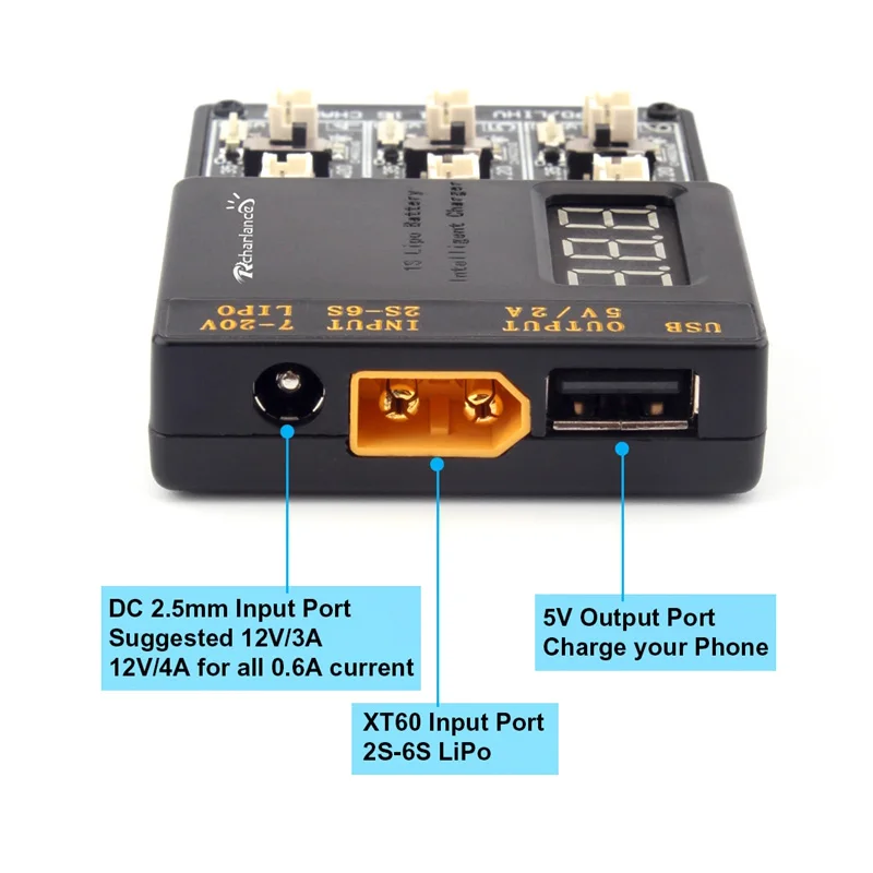 AOK CX605 CX610 6CH DC/XT60/USB Battery Charger for 3.7V 1S Lipo Battery Rechargeable for RC Drones FPV Quadcopter Charging