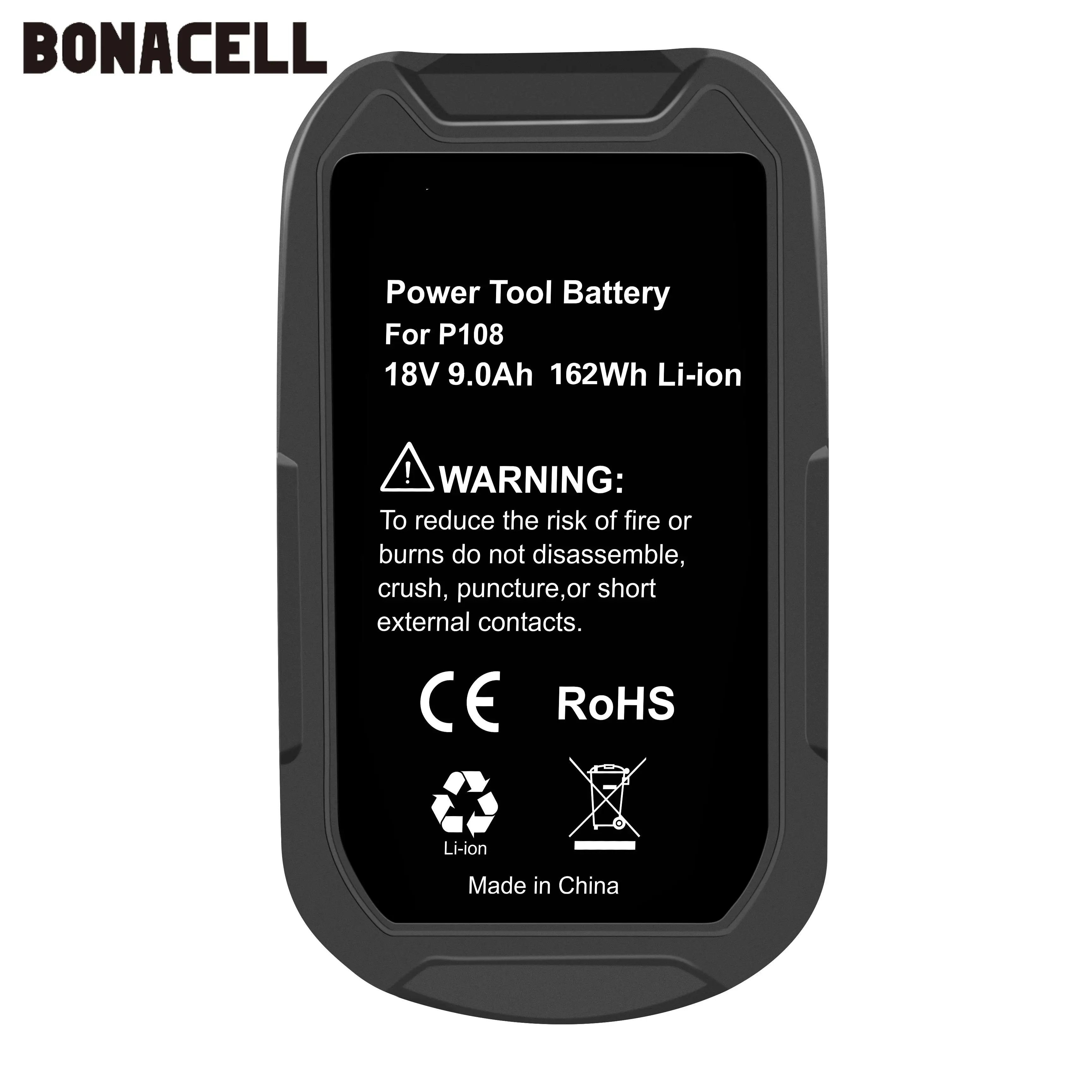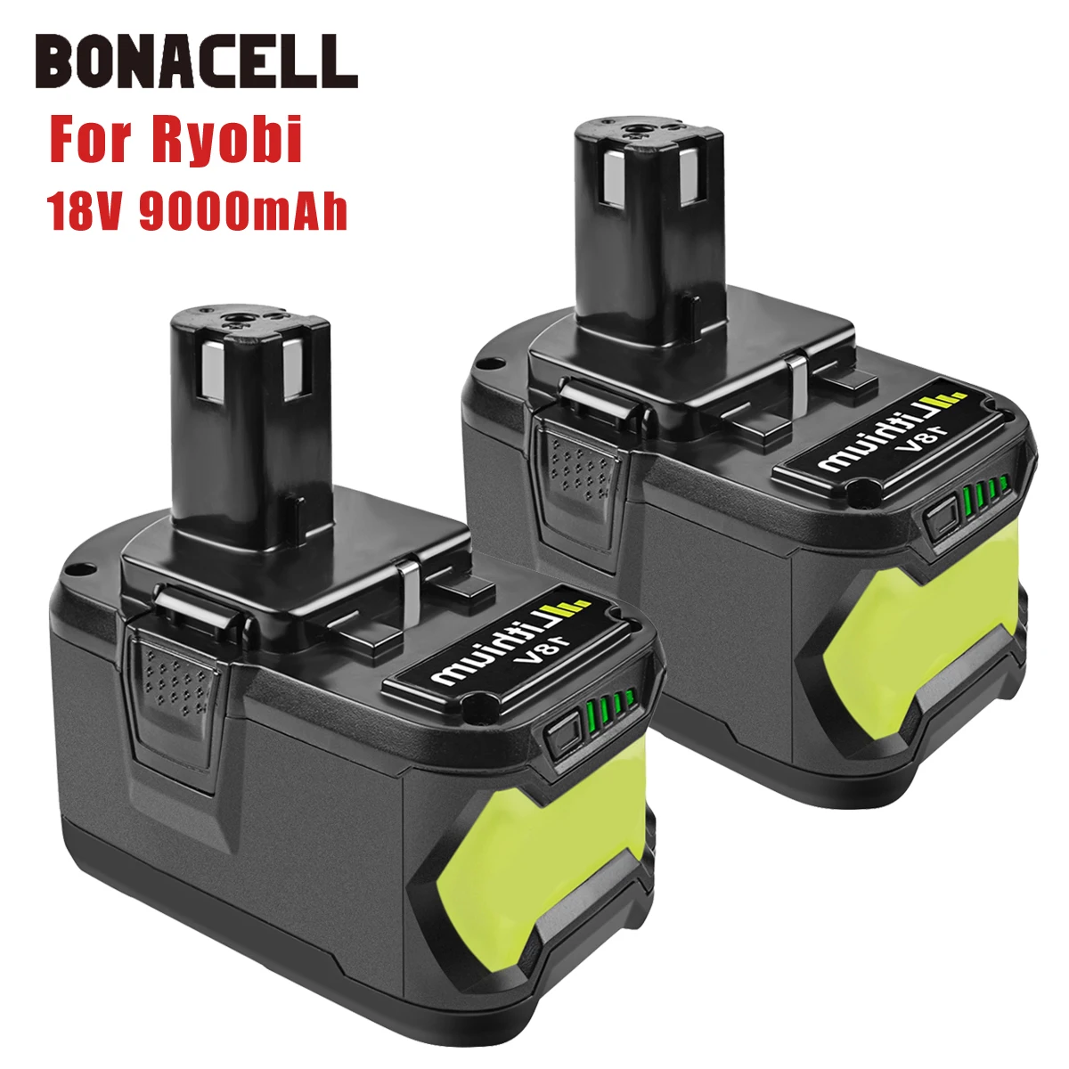 Bonacell 18V 9000mAh Li-Ion P108 Battery For Ryobi Rechargeable Battery RB18L40 P2000 P310 for BIW180 L30 lithium batter