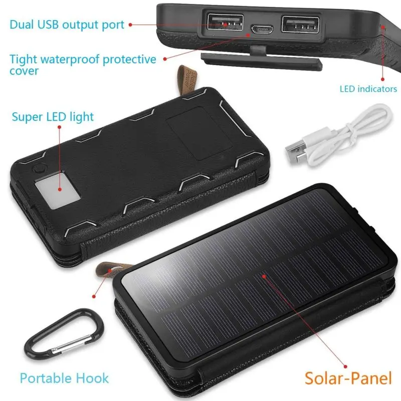 Waterproof Solar Power Bank 20000 mAh Dual USB External Polymer Battery Charger Outdoor Light Lamp Powerbank
