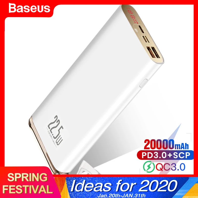 Best Product Baseus Quick Charge 3.0 20000mAh Power Bank USB C PD 5A SCP Powerbank For Huawei Xiaomi iPhone Port