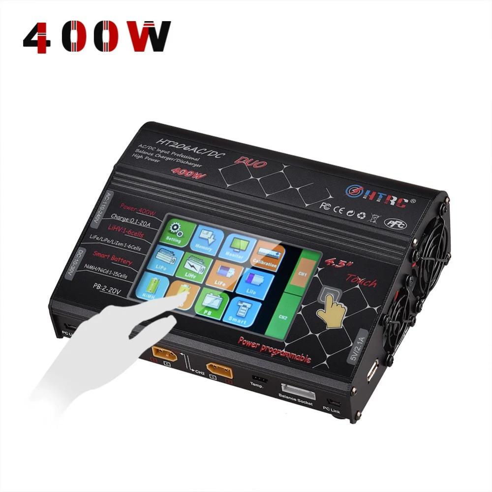 Best Product HTRC HT206 DUO AC/DC 200W*2 20A*2 Dual Port High Power Color Touch Screen RC Balance Charger for Li