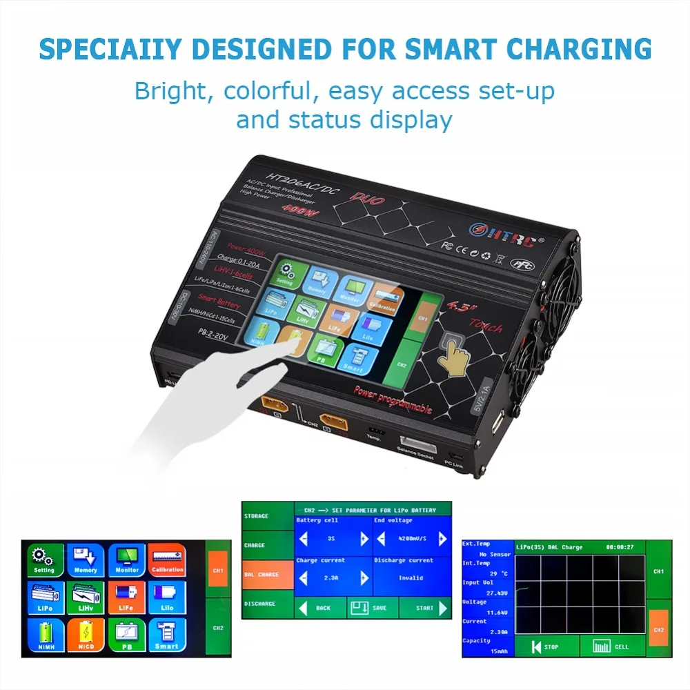 Best Seller HTRC HT206 DUO AC/DC 200W*2 20A*2 Dual Port High Power Color Touch Screen RC Balance Charger for Li