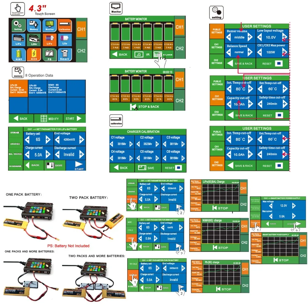 HTRC HT208 AC/DC 4.3"Color LCD Touch Screen 420W 20A RC Balance Charger/Discharger for 1-8s Lilon/LiPo/LiFe/LiHV Battery