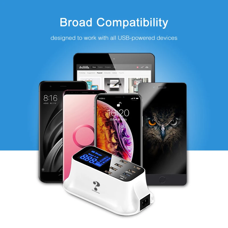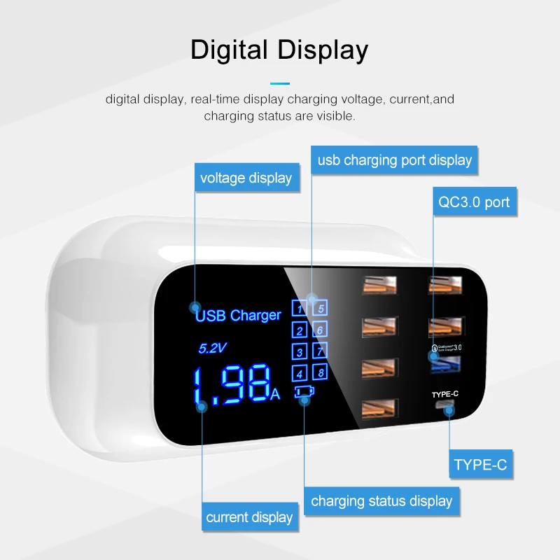 Best Product Quick Charge3.0 USB Type C Charger Station Led Display Fast Charging Station Phone Tablet USB Charg