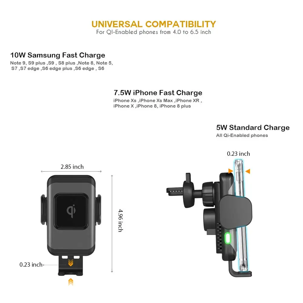 10W Qi Wireless Car Charger Automatic Clamping Car Wireless Charger Fast Wireless Charger mount For iPhoneXS xiaomi Phone Holder