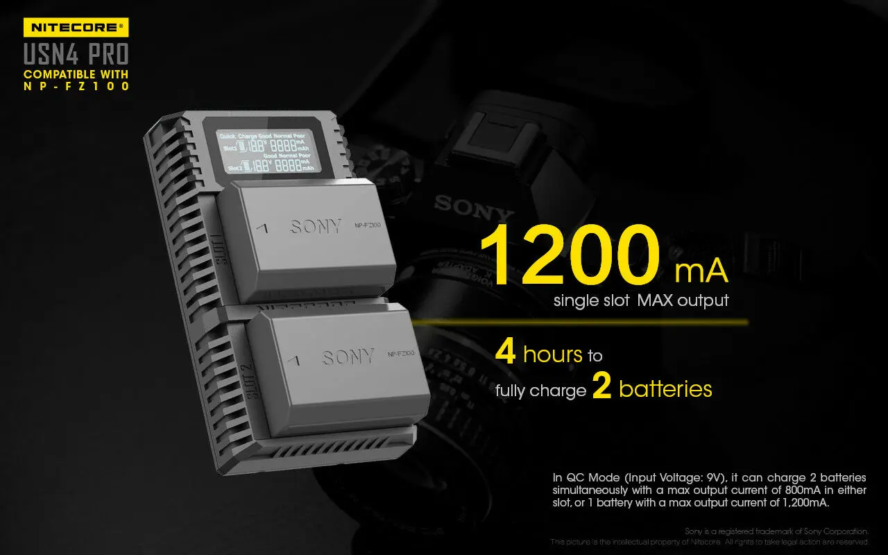 Best Product Nitecore USN4 PRO Digital Dual Slot Travel Camera Charger For Sony NP-FZ100 Batteries Compatible Wi