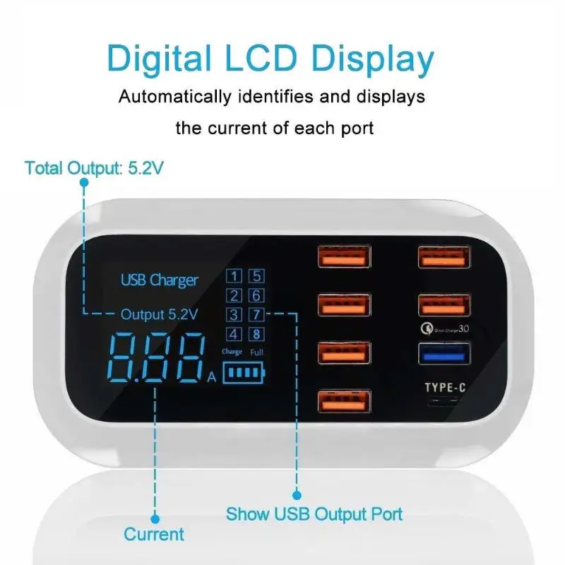 Big Promo 8 Ports Led Display USB Charger For Android iPhone Adapter Phone Tablet Fast Charger For xiaomi hua