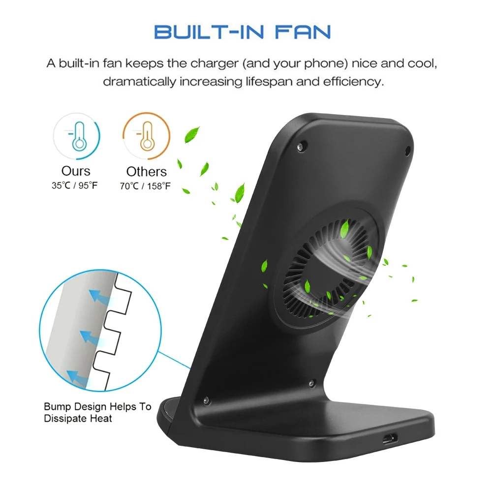Buy Now FDGAO Fast Qi Wireless Charger Quick Charge 3.0 USB 10W Fast Charging Stand with Cooling Fan for iP