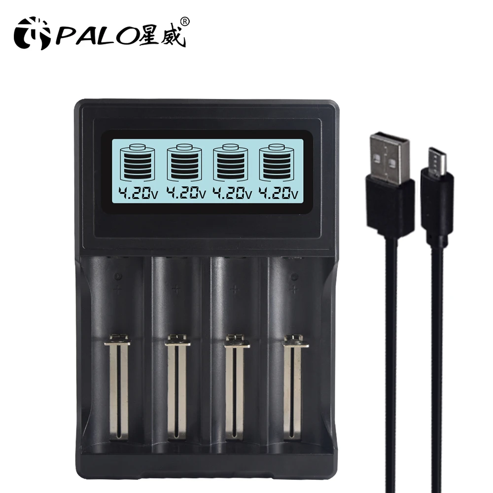 Buy Now PALO 4 slots LCD Display 18650 battery Charger for 18650 14500 18500 16350 battery 3.7V series lith