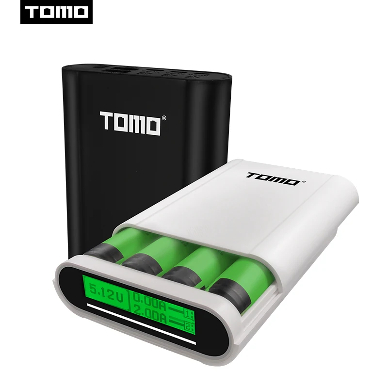 TOMO 18650 Charger Powerbank case P2 lithium battery smart charger storage box LED indicator Dual USB output ports 2A