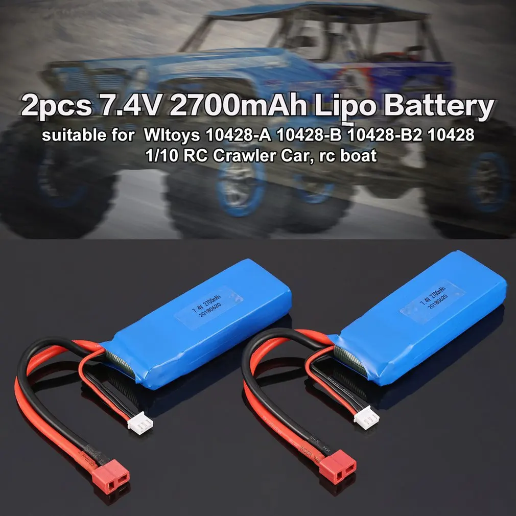 Best Product 2019 2pcs 7.4V 2700mAh 20C 2S Lipo Battery with T Plug For Wltoy 10428-A 10428-B 10428-B2 10428 1/1
