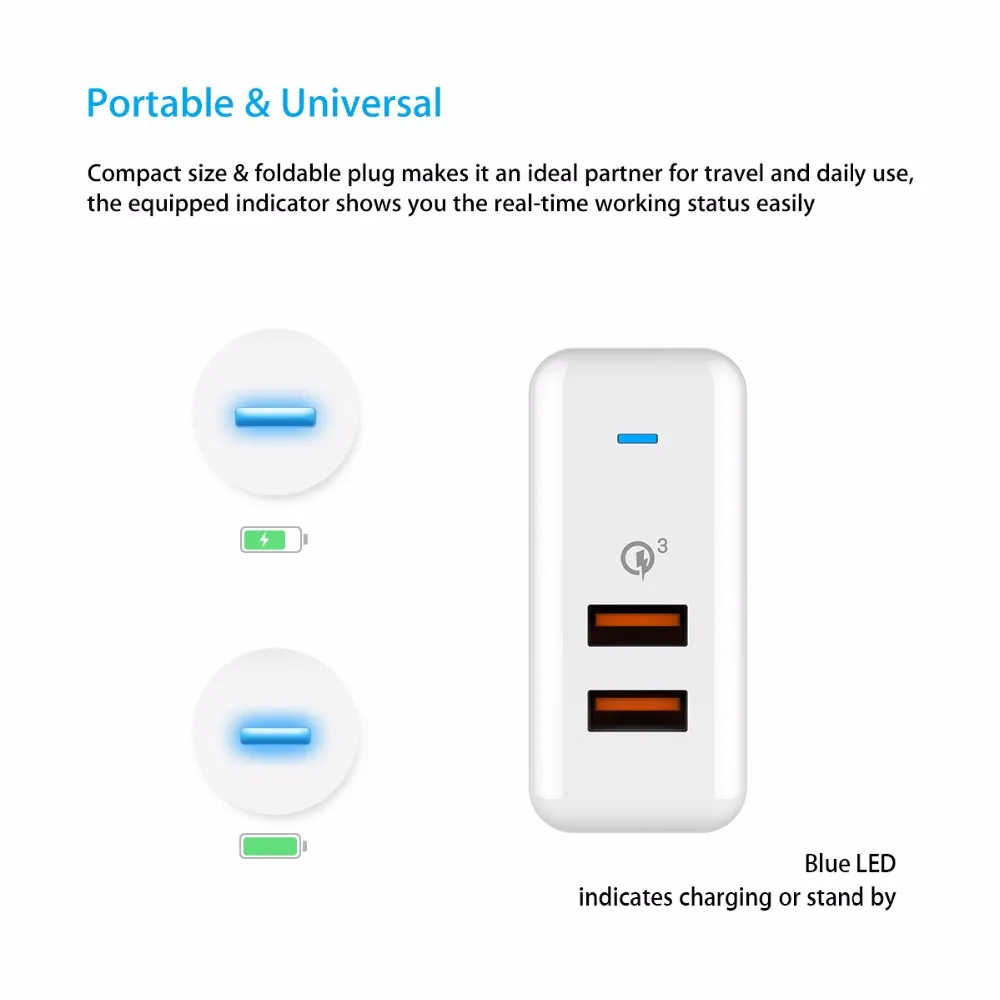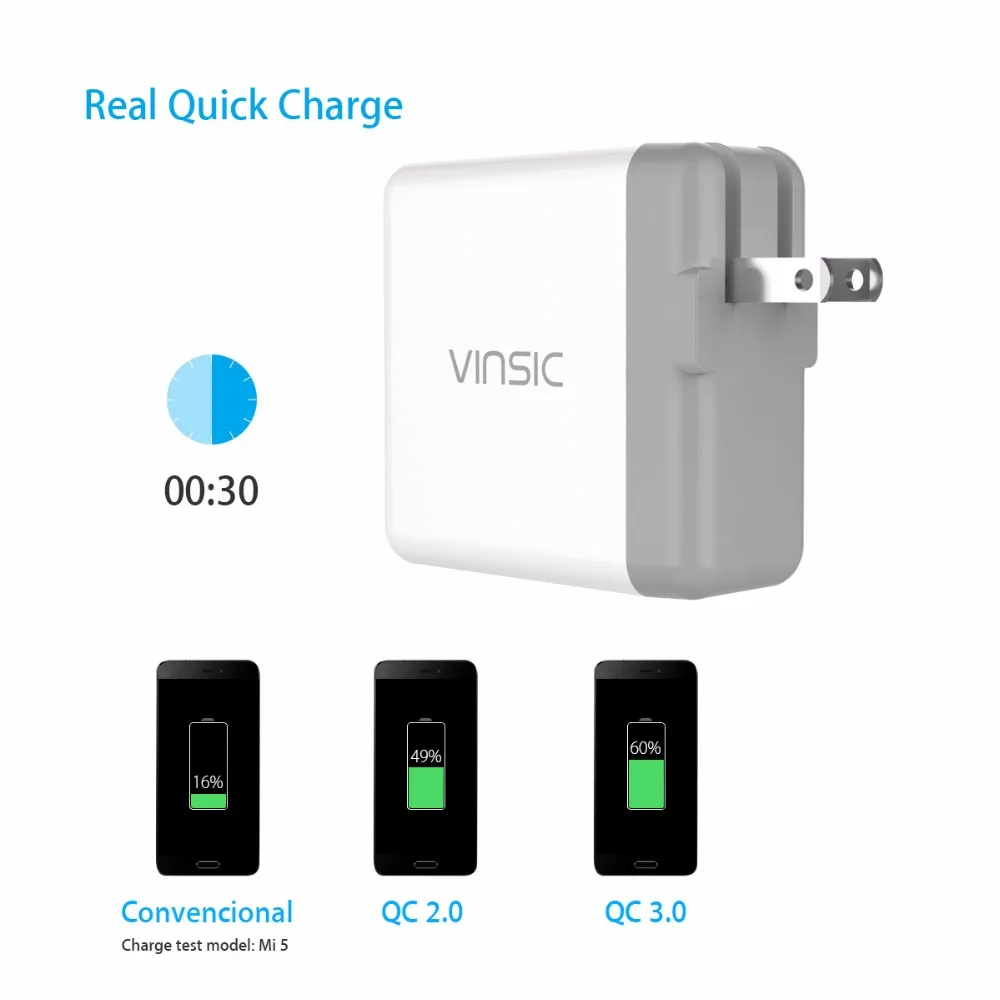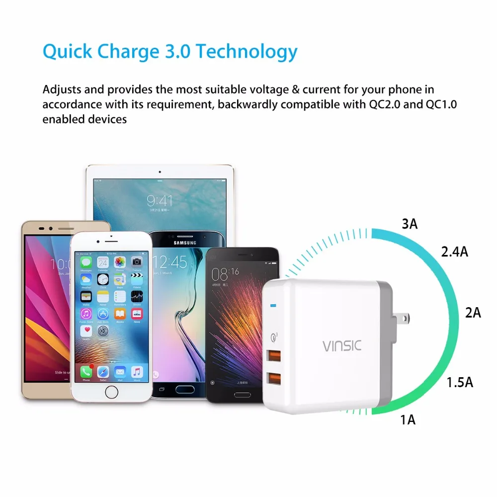 Hot Sale Vinsic 36W Quick Charge 3.0 QC3.0 Dual USB Wall Charger Travel Charger for iPhone/iPad Samsung Gala